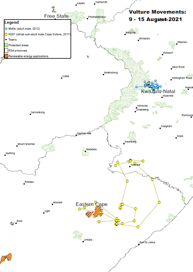 Satellite Tracked Vulture Movements 09 -15 August 2021